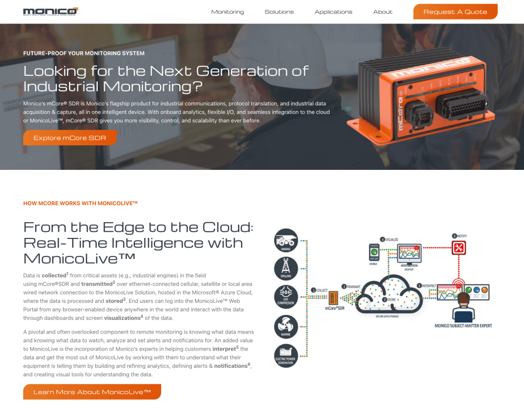 As the creative director and lead UX designer on this project, I helped guide a complete website overhaul for Monico Monitoring, a trusted provider of industrial communication gateways and remote condition monitoring solutions. The company was evolving rapidly—from a focus on rugged hardware to a sophisticated offering that blended edge devices with advanced data analytics. But their existing website hadn’t kept up.