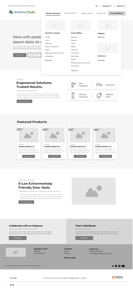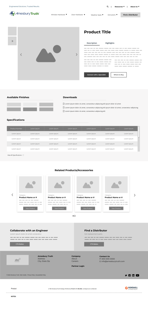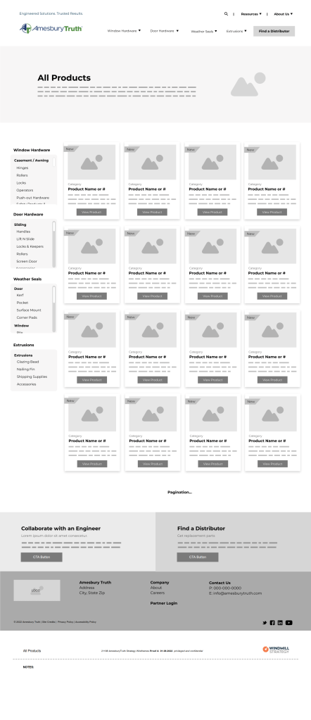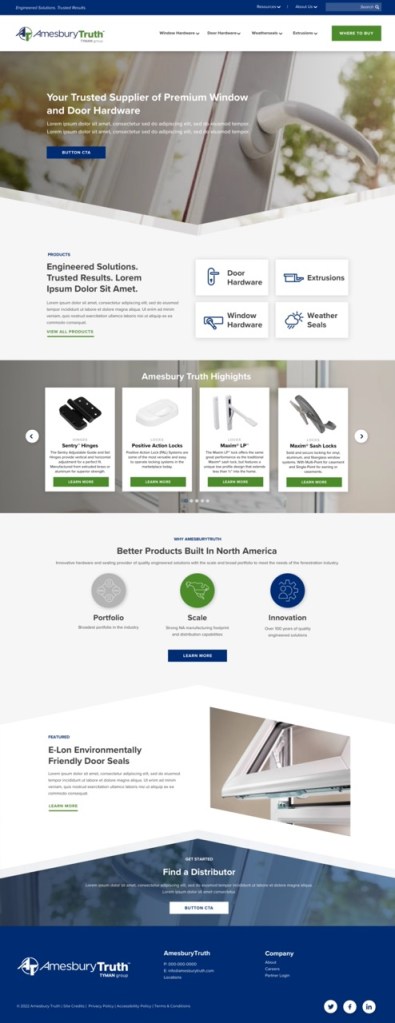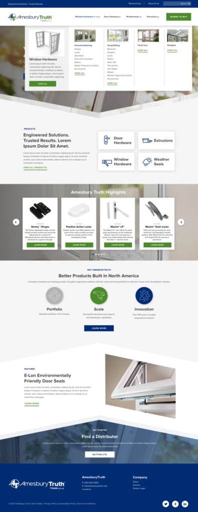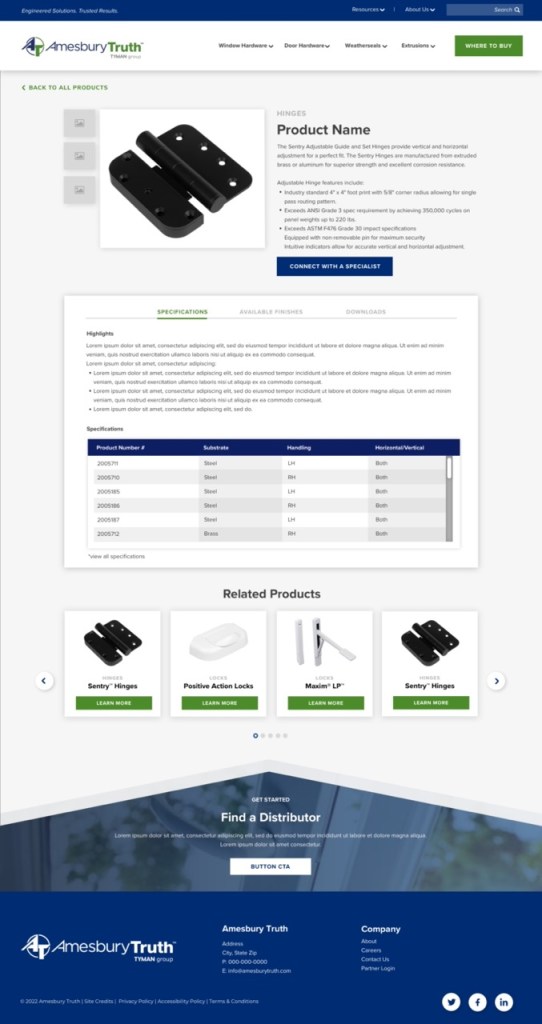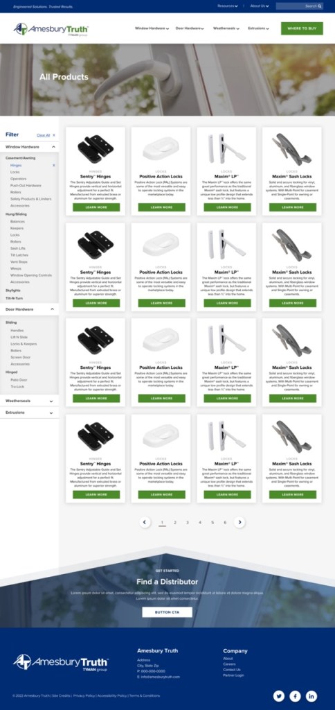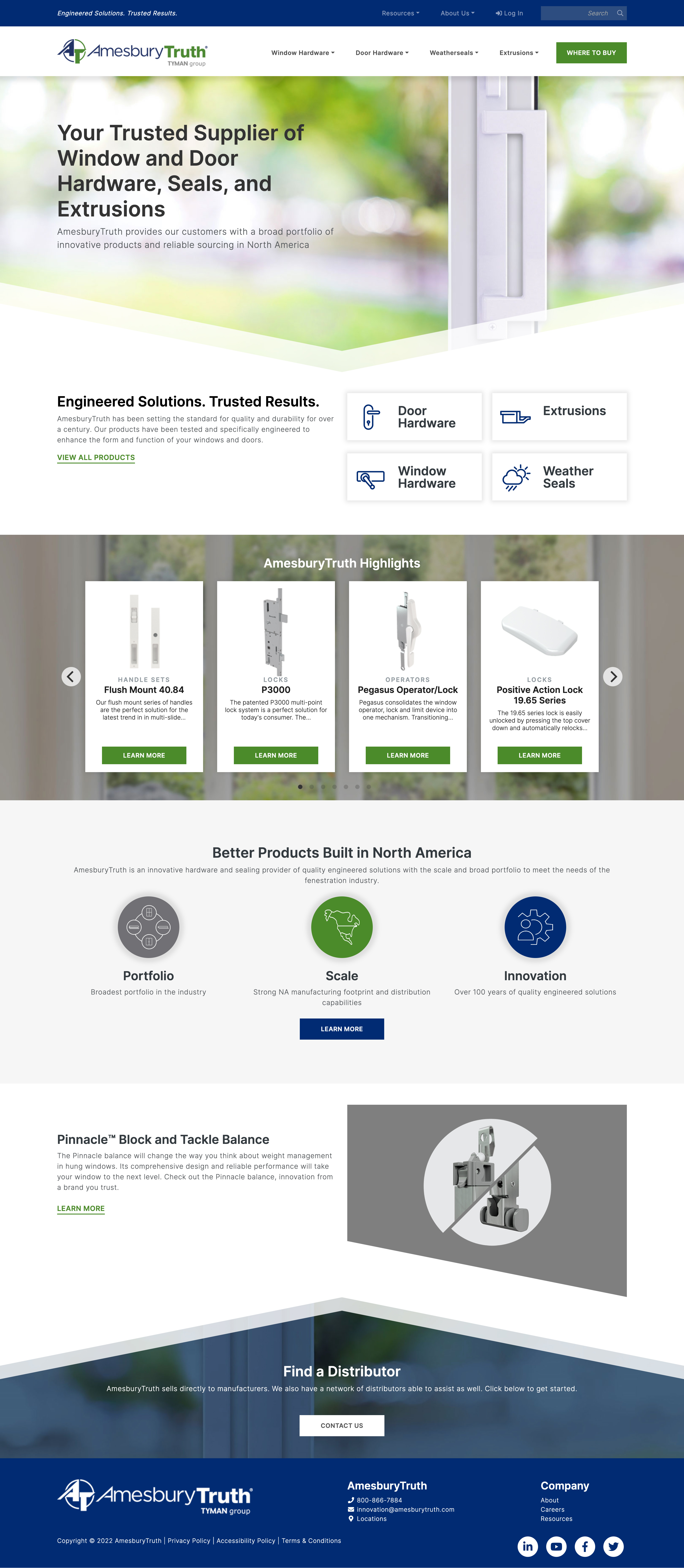 Amesbury Truth, the leading window and door hardware manufacturer in North America, needed a website refresh that fit with their new branding. I worked with a team of developers and the marketing team at Amesbury to strategize a new product archive and structure to better showcase their broad portfolio of innovative products. As the lead UX designer I strategized, wireframed and designed while keeping a custom code structure in mind.